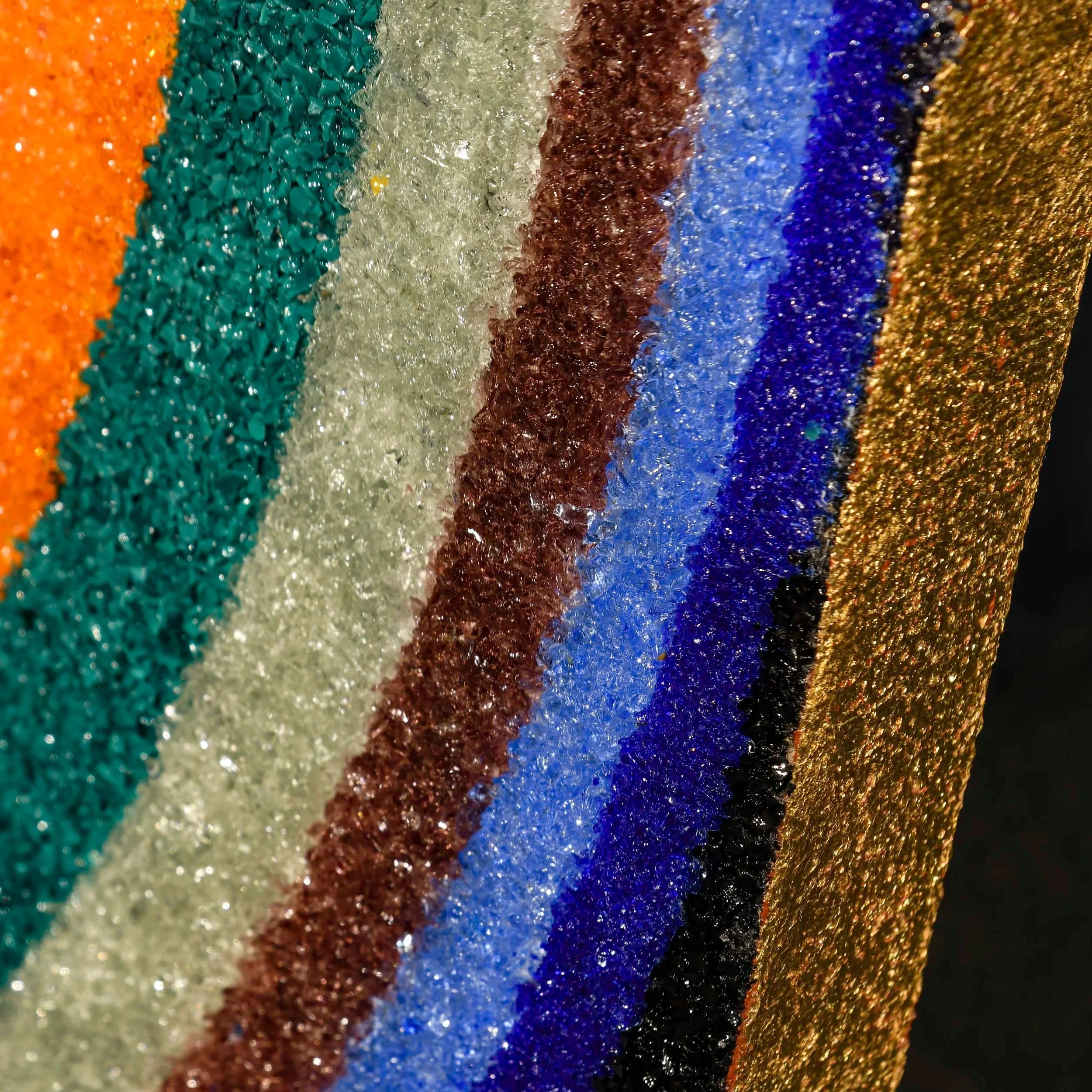 MicroCristallo Fusione, gold leaf, acrylic, jute on beechwood