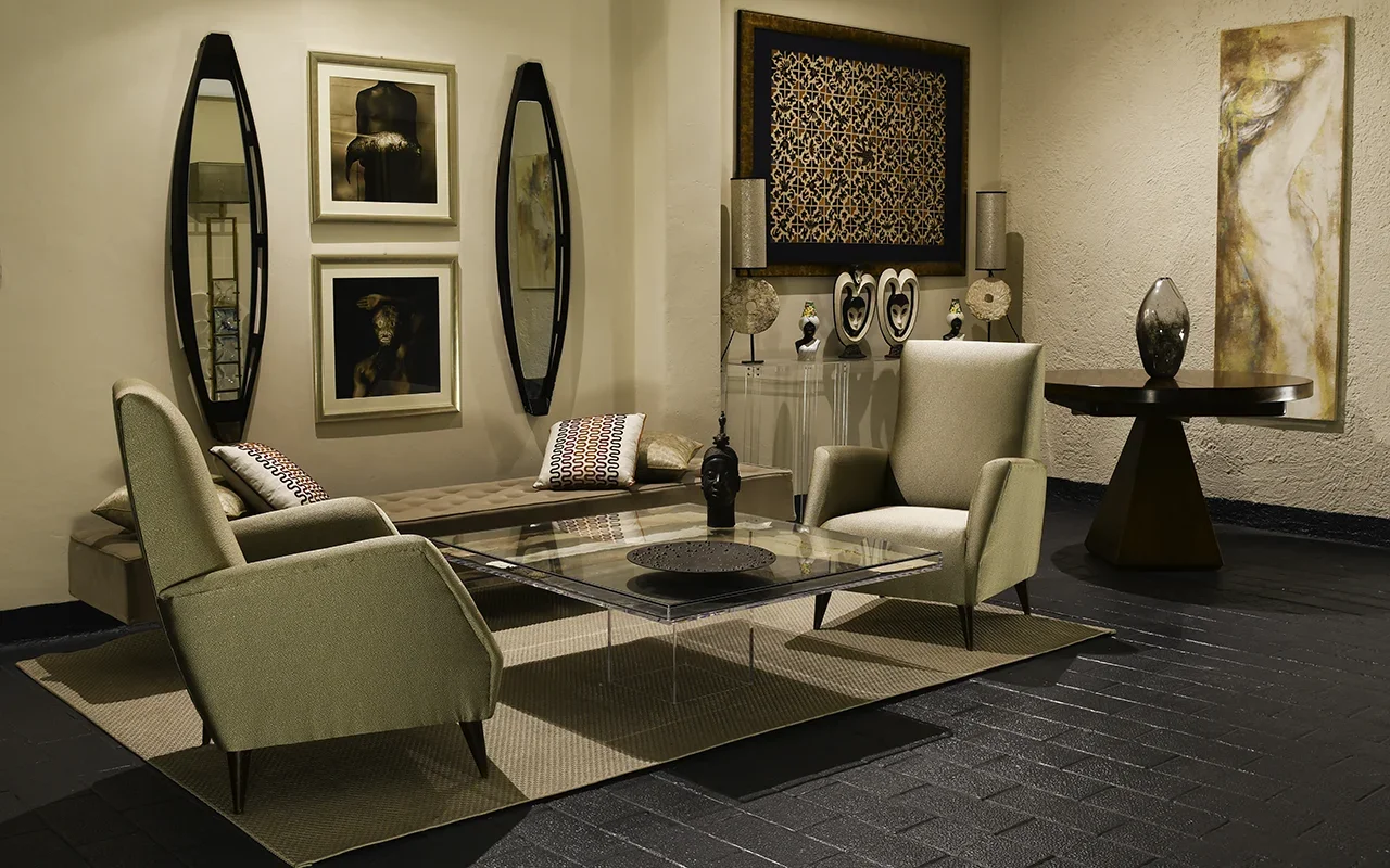 The showroom features a rotating presentation of one-of-a-kind sculptural tables, mirrors, and architectural artworks. Explore Original Sculptural Furniture.